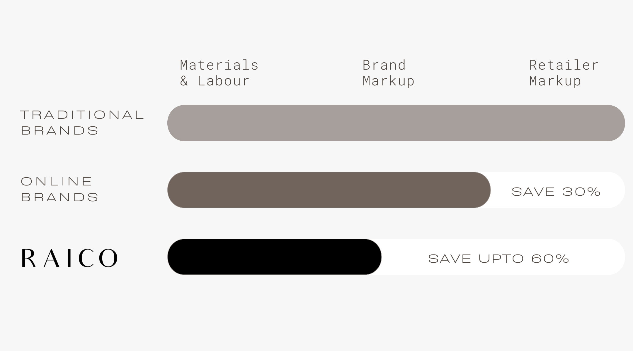 Raico was created to challenge this notion and return to a more egalitarian past: a world in which an aspirational lifestyle and beautiful products that people would consider luxuries are made available to all. We believe that the quality of the product should define luxury , not the logo or the price tag.
